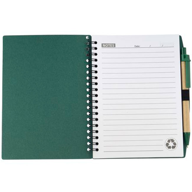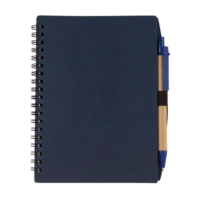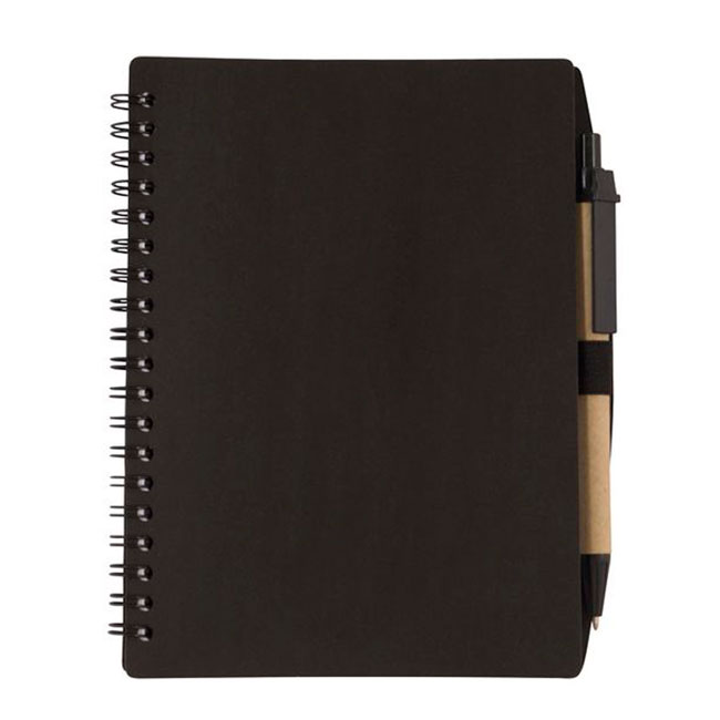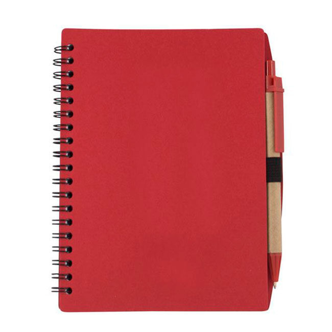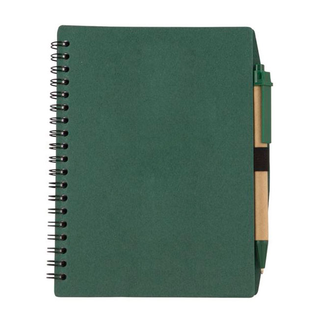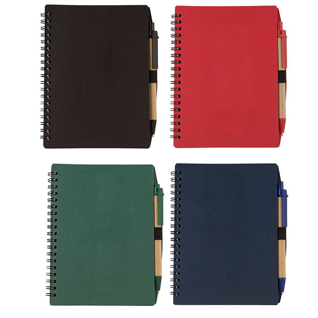 • Еко бележник с еко химикалка от рециклирана хартия. Корицата е цветна.