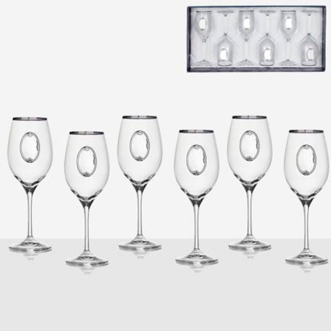 Комплект Invino 6 чаши за вино, сребърна плочка