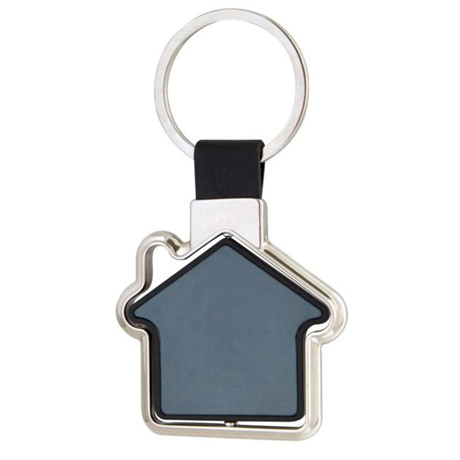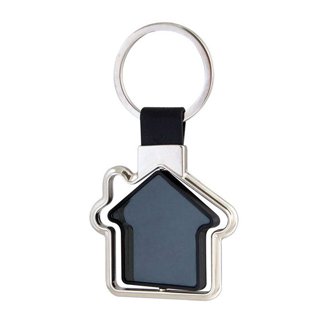 - Ключодържател с въртяща се къщичка с хромирани и кожени елементи.