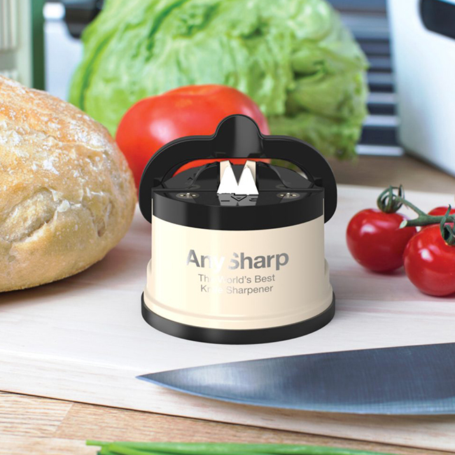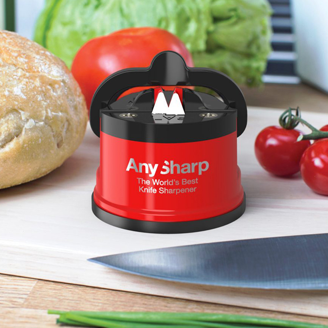 - Точилото AnySharp възстановява ножовете безопасно и предпазва ръцете от нараняване. Само няколко леки плъзвания и ножът е като нов.