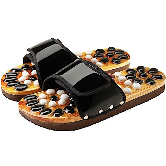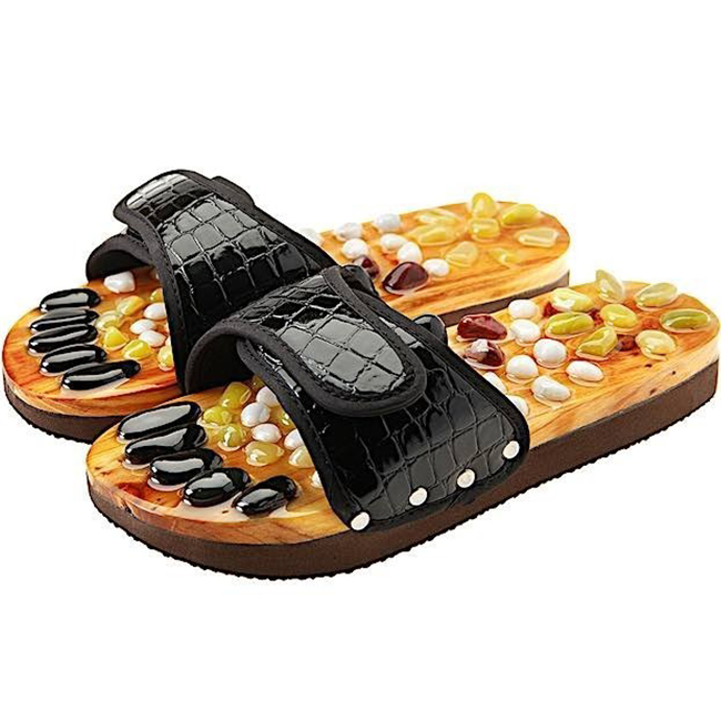 CASADA Масажни чехли за рефлексотерапия с естествени камъни - черен цвят - размер L / № 39 - 41