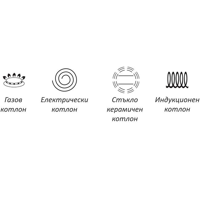- Подходящ за: газов котлон, електрически котлон, стъкло керамичен котлон и индукционен котлон.