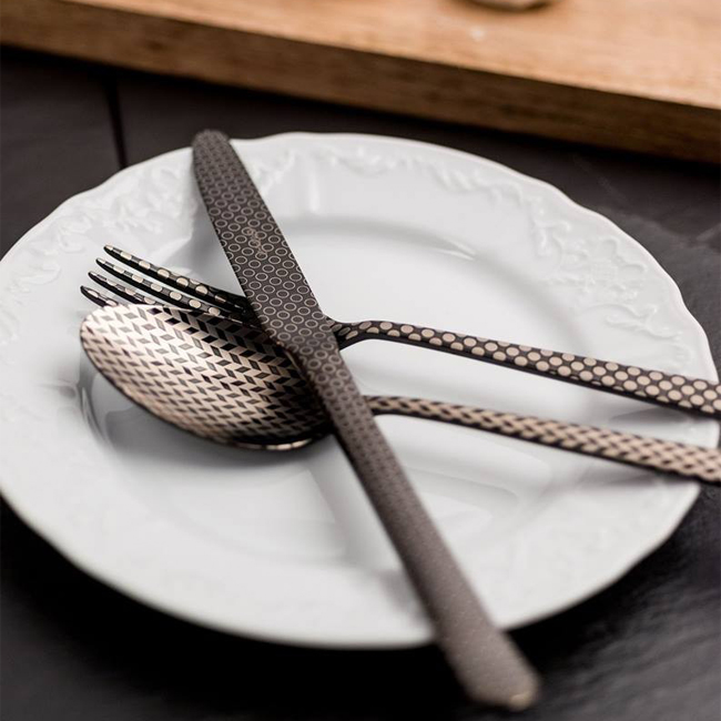 - Всички прибори, покрити с PVD, е препоръчително да бъдат почиствани в съдомиялна машина и никога с абразивни или агресивни препарати, както и груби гъби.