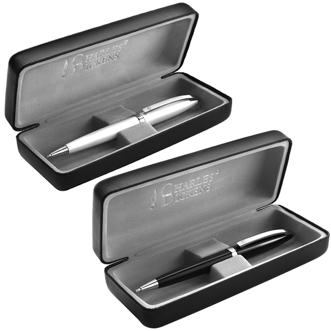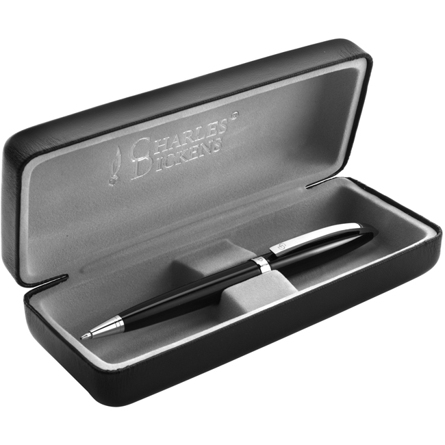 Пластмасова химикалка с метални елементи CHARLES DICKENS в луксозна подаръчна кутия. Черно мастило.