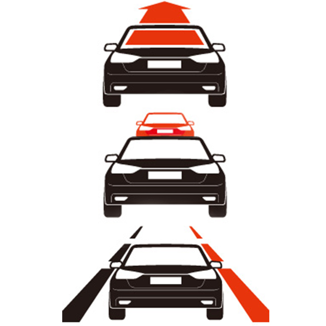 Системата чете пътната маркировка и подава гласово предупреждение на водача, за това че автомобилът напуска лентата за движение, както и за опасности от сблъсък отпред или отзад.Wi-Fi се включва автоматично при стартиране на апликация за смартфон IROAD и автоматично проверява за обновявания.