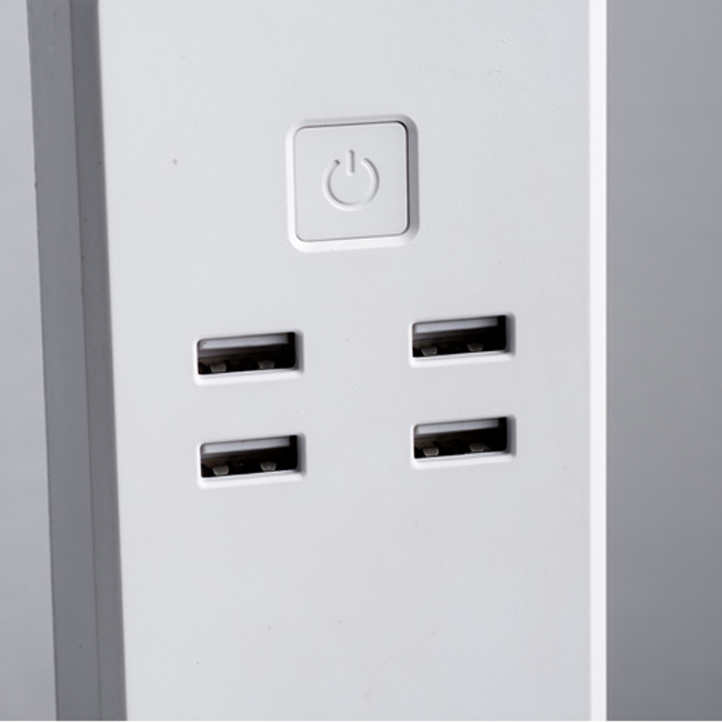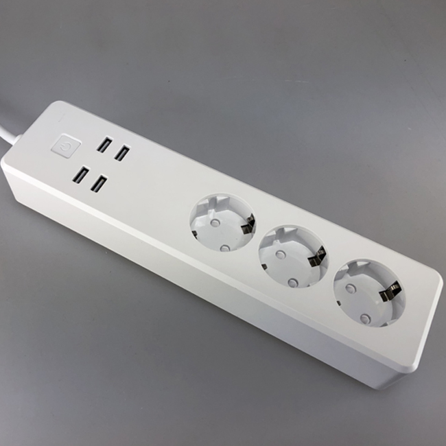 Разклонител с максимален товар 10А, 3 гнезда, 4 USB изхода х 5V, връзка с WiFi и управление през апликация.