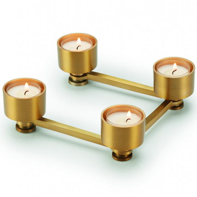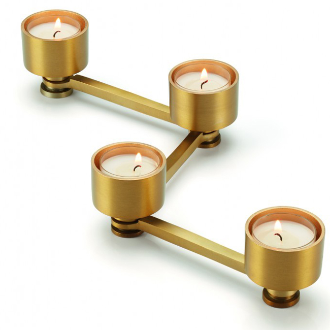Най-ярката особеност на тази верига от свещи, изработени от неръждаема стомана и златисто покритие от алуминий, е нейният скромен и деликатен външен вид. Неговите свободно движещи се стави могат да се разместват в различни форми. Може да спестява пространство за малки и уютни маси, а в разгънато положение стои чудесно на по-големи празнични трапези.