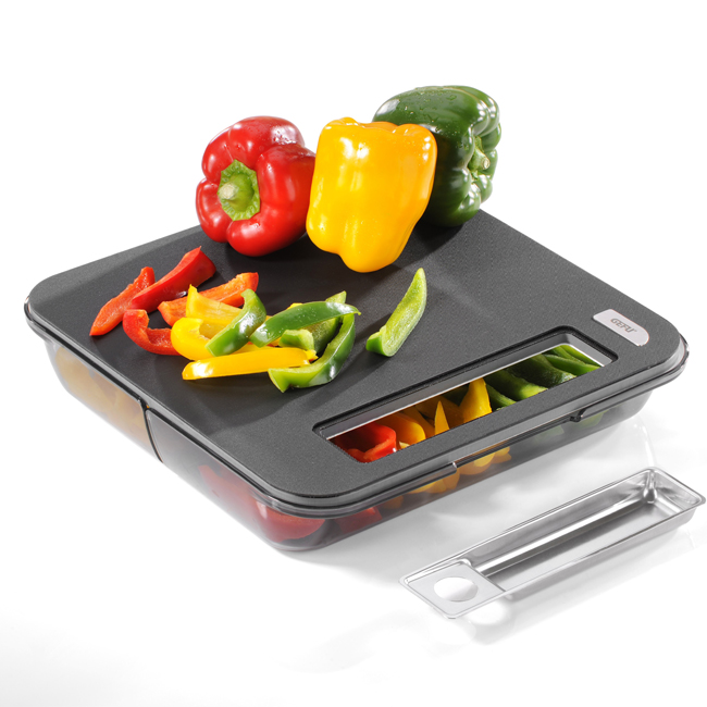 Този комплект - дъска за рязане и кутия се отличава с многобройните си приложения.Малки количества нарязана храна може да бъде събрана от кутията или да се отнесе с помощта на гъвкава дъска за рязане.Подходяща за съдо-миялна машина