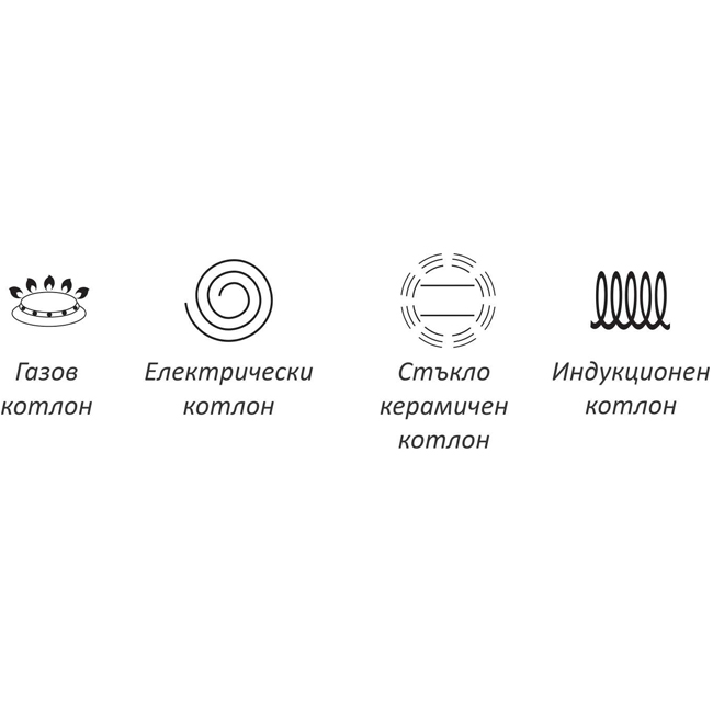 - Подходящ за: електрически, газов, стъкло керамичен и индукционен котлон