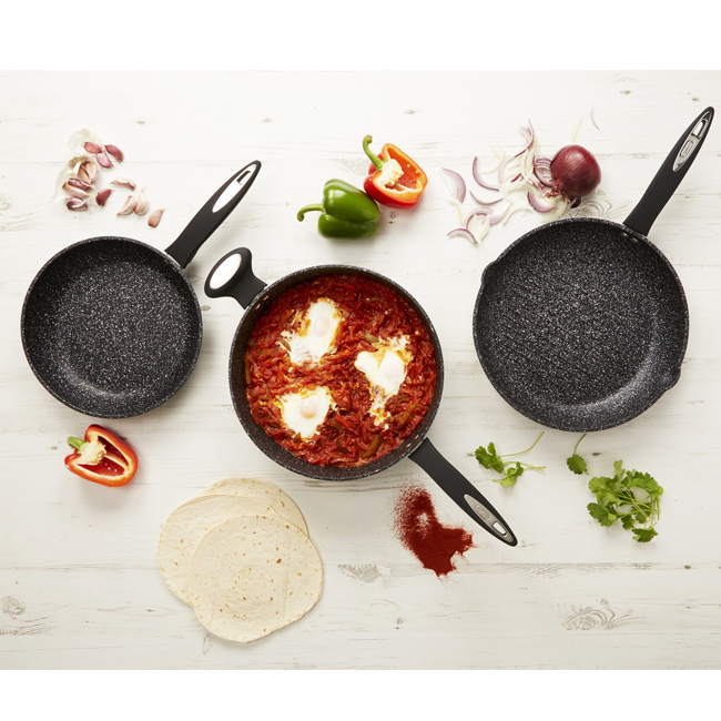 Технологията ROCKPEARL прави съдовете по-издръжливи и позволява да използвате метални прибори за готвене и напълно елиминира необходимостта от използване на мазнина.