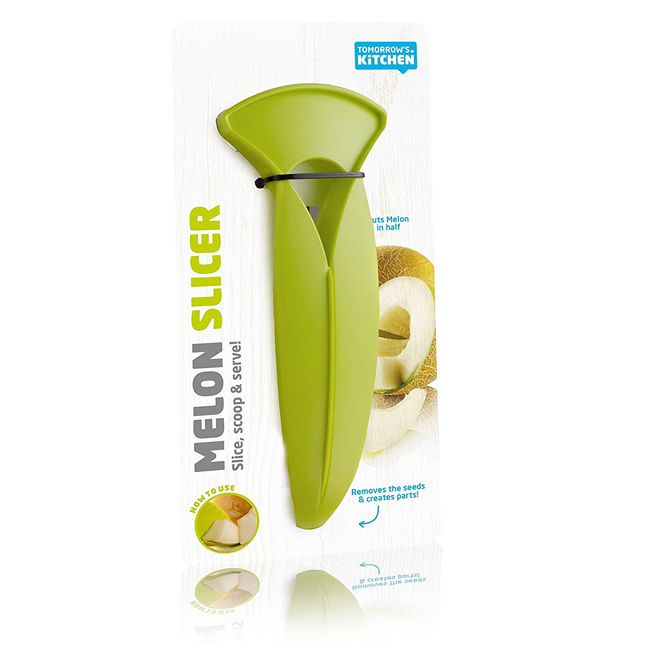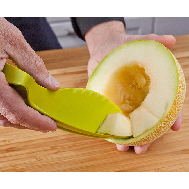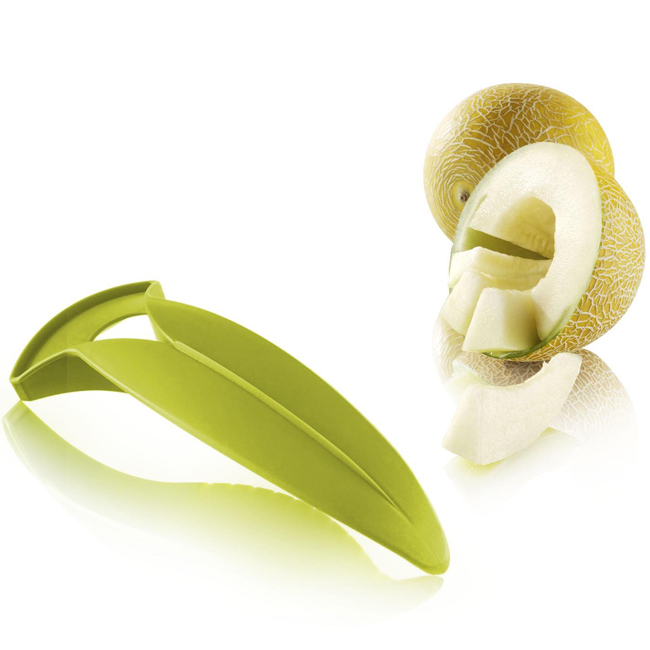 С ножът за пъпеши можете бързо и лесно да разрежете пъпеш на половинки, да извадите семената и готови за ядене резени. С този аксесоар спестявате реално време при подготовката на пъпеш за Вашата плодова салата или просто като здравословна закуска.