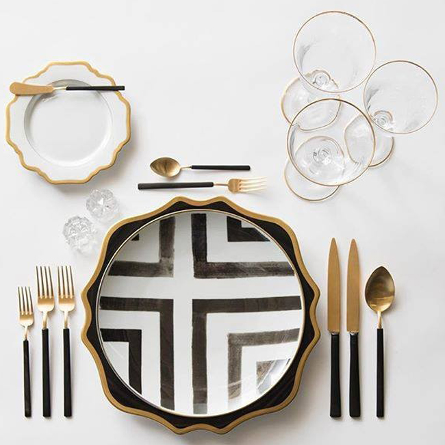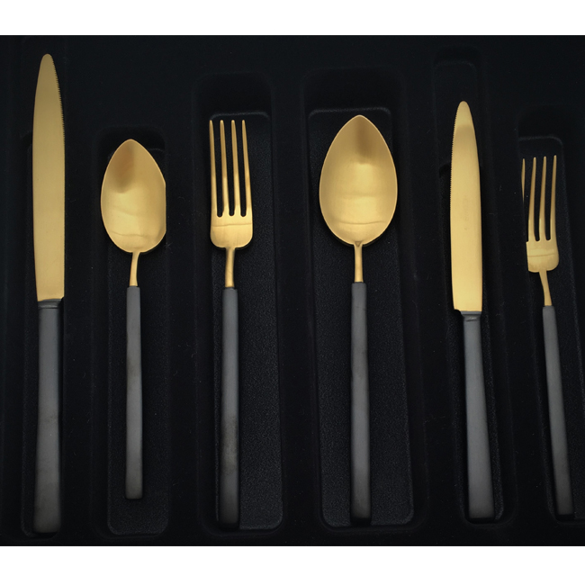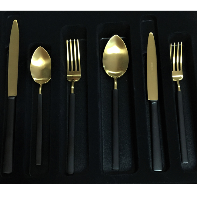 - HERDMAR Комплект прибори за хранене “VINTAGE“- 36 части- златни с черна дръжка - PVD покритие - мат