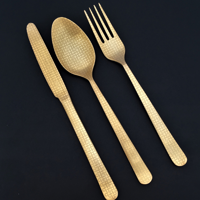 • Приборите за хранене със златно покритие имат покритие с дебелина от 3 или 4 микрона 24 карата злато