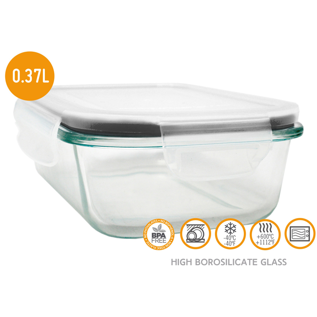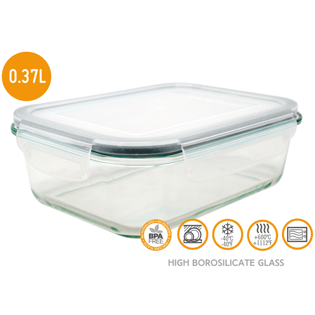 Стъклена кутия за храна с херметическо затваряне - 370 мл.