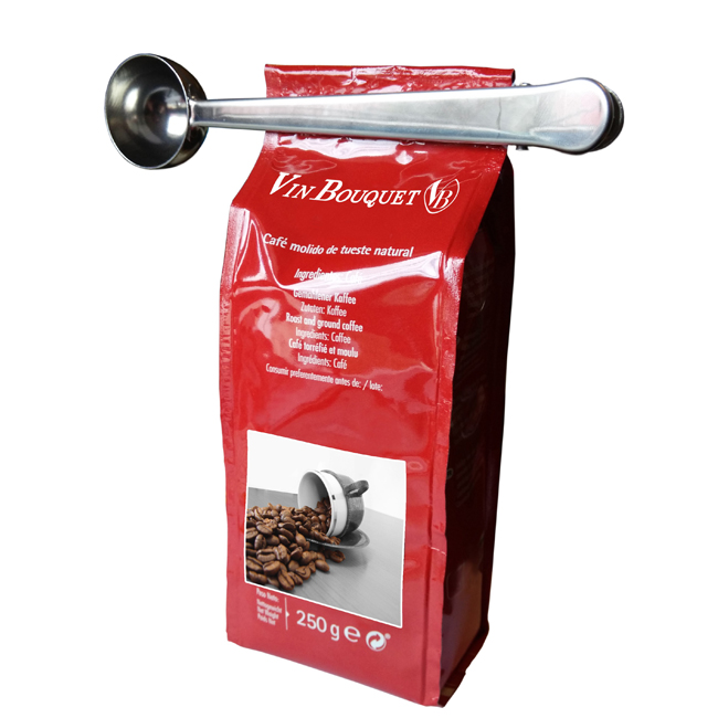 Мерителна лъжичка за чай и кафе - 2 в 1. След като измерите нужното Ви количество кафе или чай с лъжичката, можете да затворите пакета с щипката, за да запазите ароматите му.