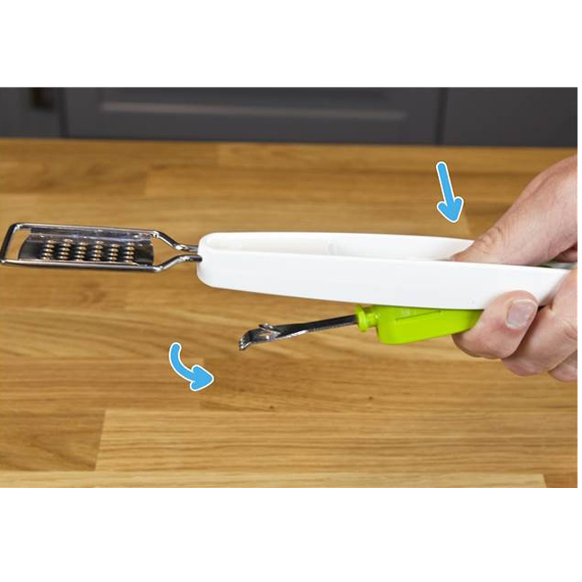 Кухненските аксесоари от серията са с дизайн 2 в 1. Те са иновативно решение в света на кулинарните инструменти и са истинско предимство за всяка кухня. Всеки от десетте продукта от серията има допълнителен аксесоар в дръжката, който допълва и улеснява подготовката на храна.