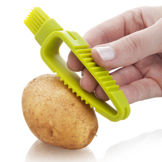 • Четка в дръжката старателно почиства гъби, картофи и други зеленчуци