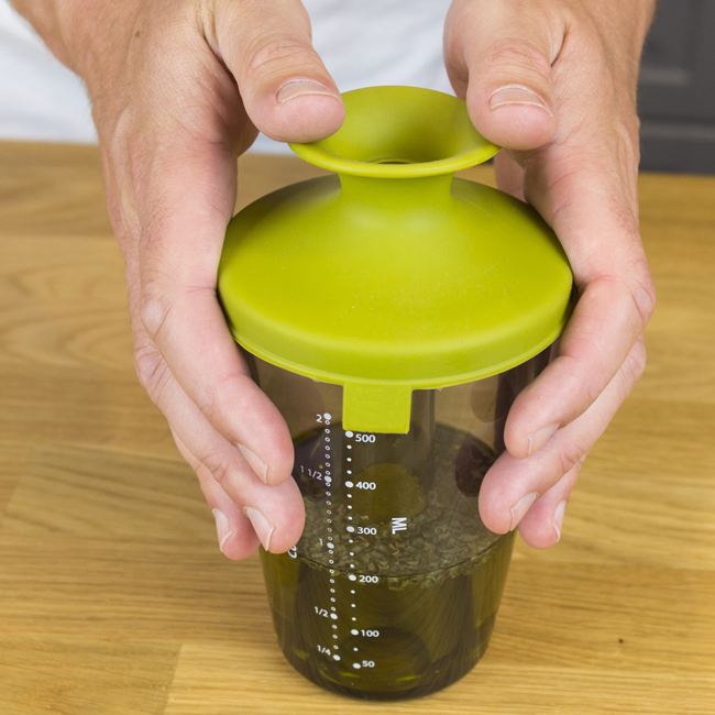 Пригответе подходящия дресинг или марината с оразмерения канистер от Tomorrow`s Kitchen. Оразмеряването отстрани ви позволява лесно и бързо да добавите необходимото количество съставки. Благодарение на уникалната и патентована система за затваряне Oxiloc, канистерът може просто да бъде затворен, за да се разклати. С този шейкър бързо и лесно приготвяме дресинги или маринати.