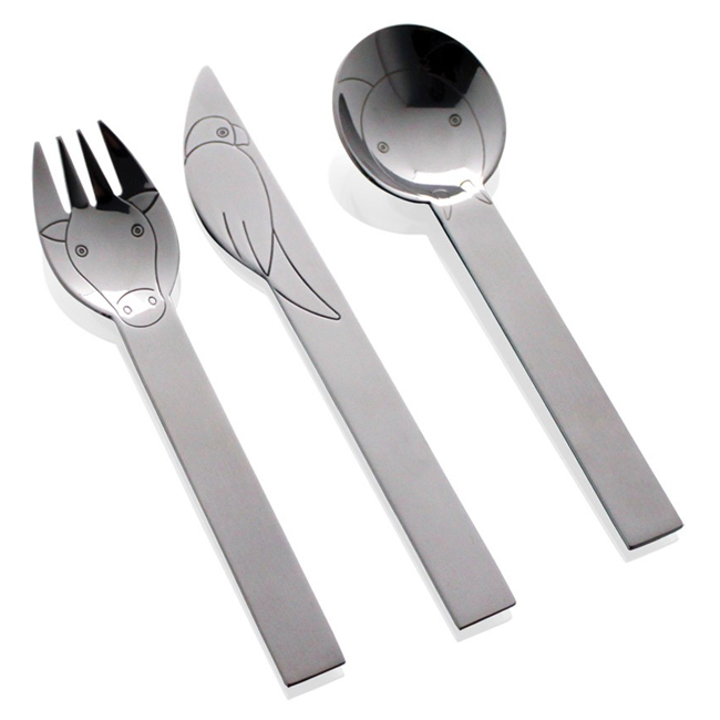 • Почистване в съдомиялна машина: Използвайте само висококачествени препарати. Измийте приборите, колкото е възможно по-скоро след тяхната употреба, като не зареждате прекалено много кошницата за прибори в съдомиялната машина. Поставяйте ножовете винаги с остриетата нагоре и отделно от другите прибори. Лъжиците и вилиците трябва да се поставят в кошницата с дръжките надолу. Никога не слагайте в кошницата прибори от неръждаема стомана, заедно с други метали, позлатени или посребрени прибори за хранене. Препоръчително е - след измиване - веднага да извадите ножовете от съдомиялната машина и да ги подсушите със суха и мека кърпа.
