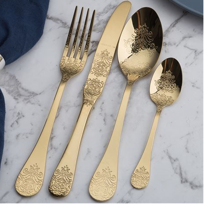 - HERDMAR Комплект прибори за хранене “POMPADOUR“- 48 части за 12 човека - позлатен