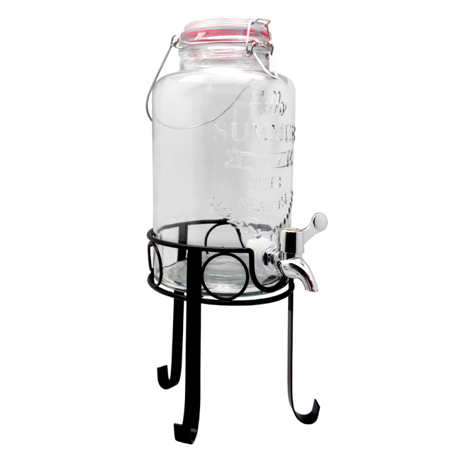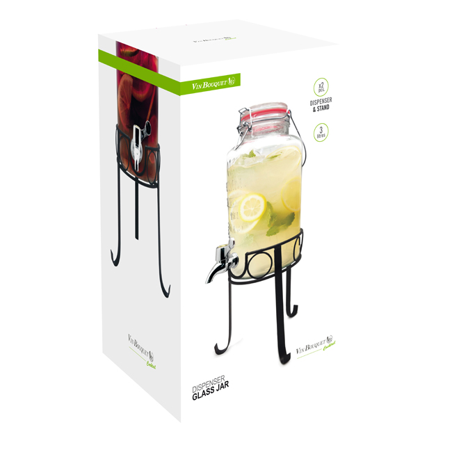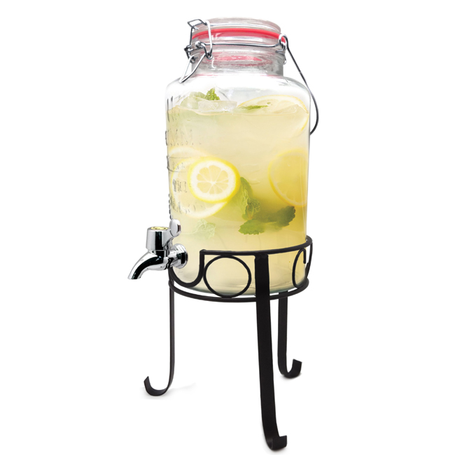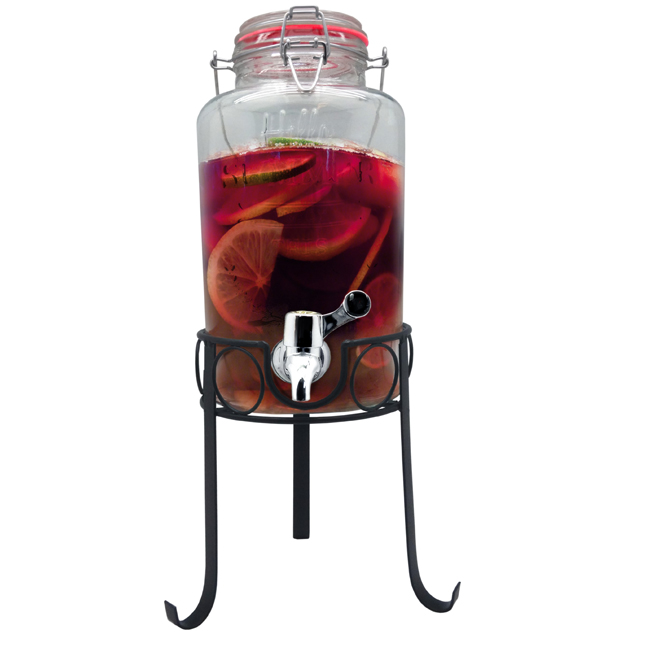 Чашата Ви никога не ще остане празна с този огромен диспенсър за напитки! Вдъхновен от традициите на домашно приготвените напитки, дизайнът на този диспенсър пресъздава огромен буркан. Изработен от дебело, висококачествено стъкло, с капак, който се затваря плътно с клипс. Широко гърло, за лесно добавяне на лед, плодове, листа мента и всички други добавки към питието Ви. Наливането става бързо и лесно посредством симпатично кранче, разположено в долната част на диспенсъра.