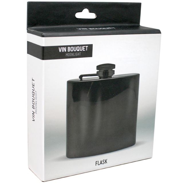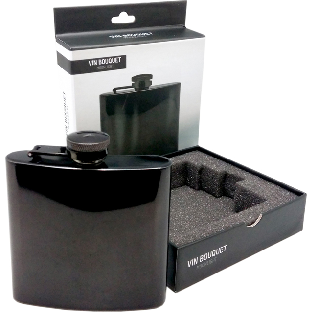 Бутилката за алкохол е подходящ подарък за мъже, ценители на качествените напитки. Красива, модерна и елегантна. Изработена от неръждаема стомана, с покритие в черен цвят. Опакована в подаръчна кутия.
