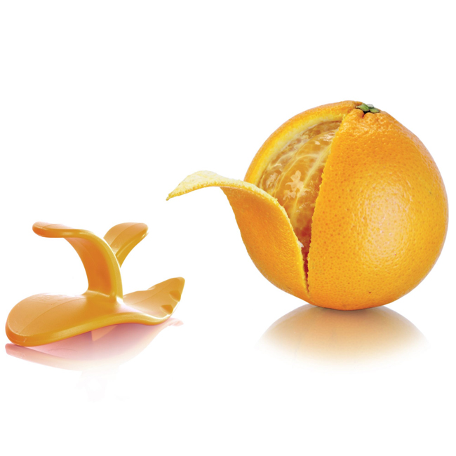С белачката за цитруси ще нарежете и обелите кората на всички цитрусови плодове с просто движение. Най-напред правите плитки разрези в кората на плодовете, след което я отстранявате бързо и лесно.