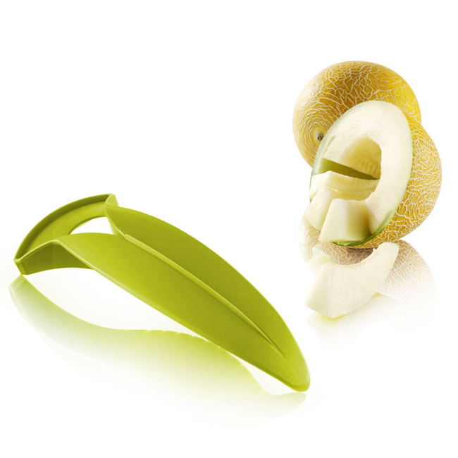С ножът за пъпеши можете бързо и лесно да разрежете пъпеш на половинки, да извадите семената и готови за ядене резени. С този аксесоар спестявате реално време при подготовката на пъпеш за Вашата плодова салата или просто като здравословна закуска.