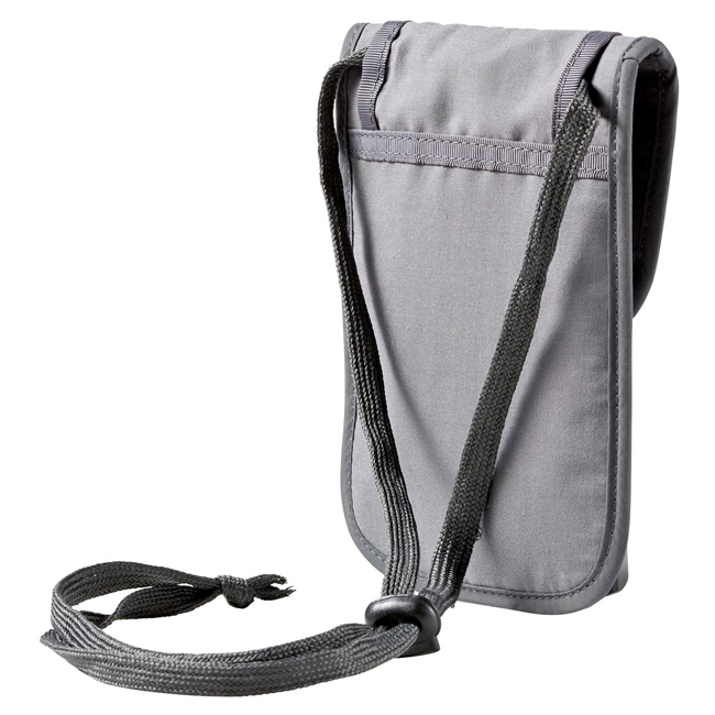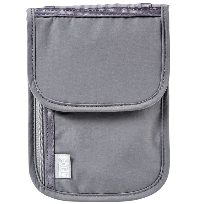 Това портмоне за врат е изработено от материал, блокиращ радио сигналите от RFID микрочиповете съхраняващи лични данни в паспорти, кредитни карти и лични карти.