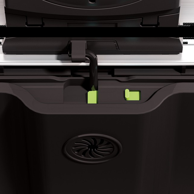 - Функция за заключване на капака в отворена позиция, за лесно почистване или смяна на торбата