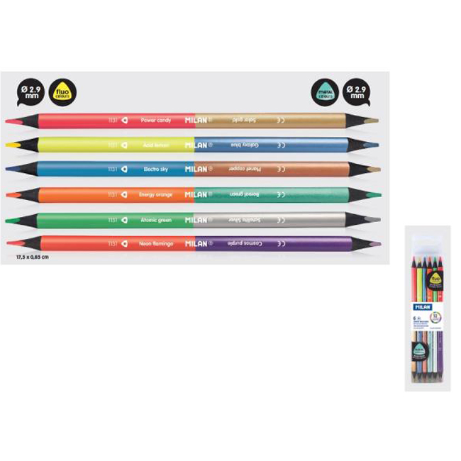 Моливи двувърхи 6 x 2 цв.(неон+металик), Bicolor триъгълни, Ø 2.9 мм графит