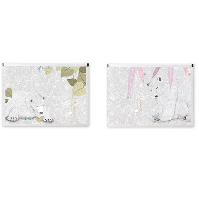 Папка с цип, дъно 30 мм, А4, мат PP, Chubby Bear, 33x24.5 см