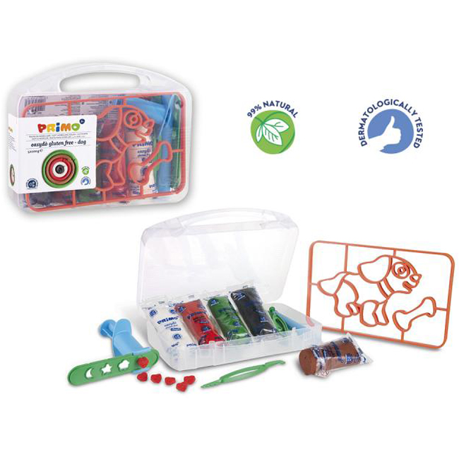 Моделин мек без глутен 5 цв.х 100 г с шаблон Куче, 6 инструмента и подложка