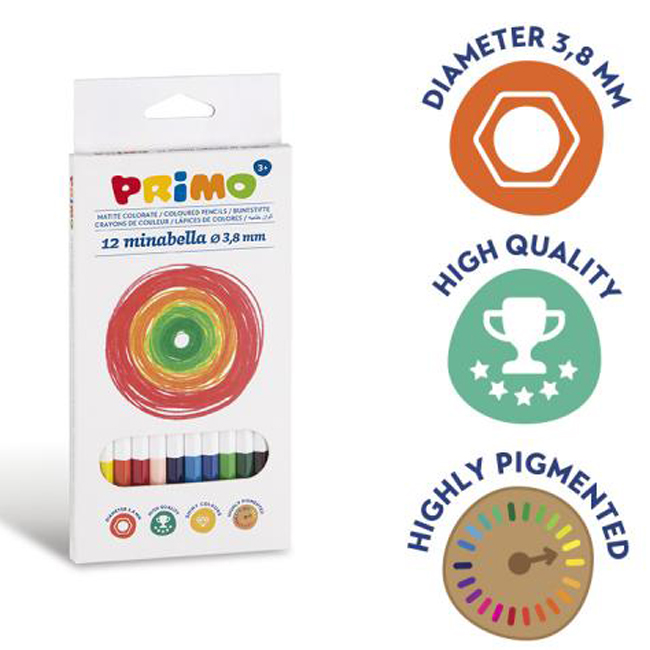 Моливи 12 цв., Minabella, шестоъгълни, Ø 3.8 мм графит