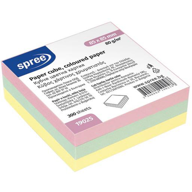 Кубче цветна хартия, 85х85 мм, 300 листа, 80 г/м2