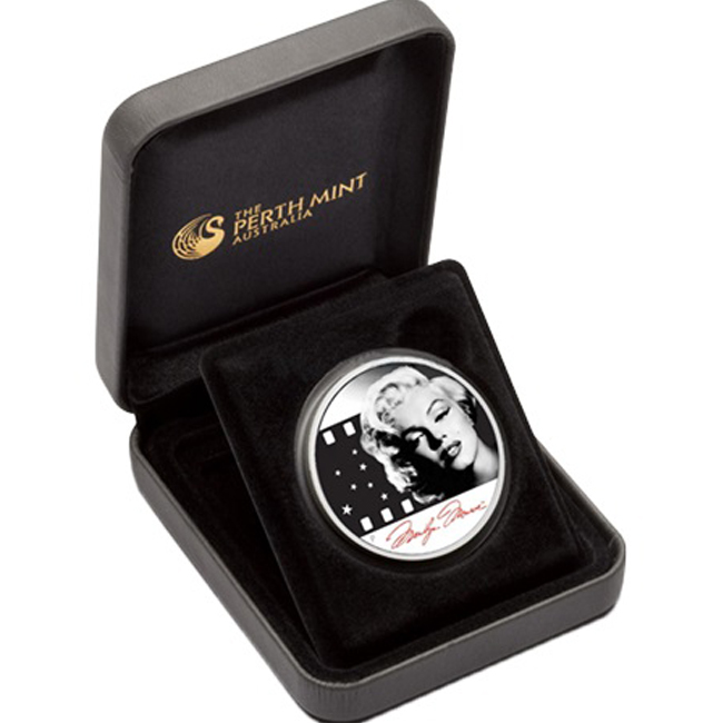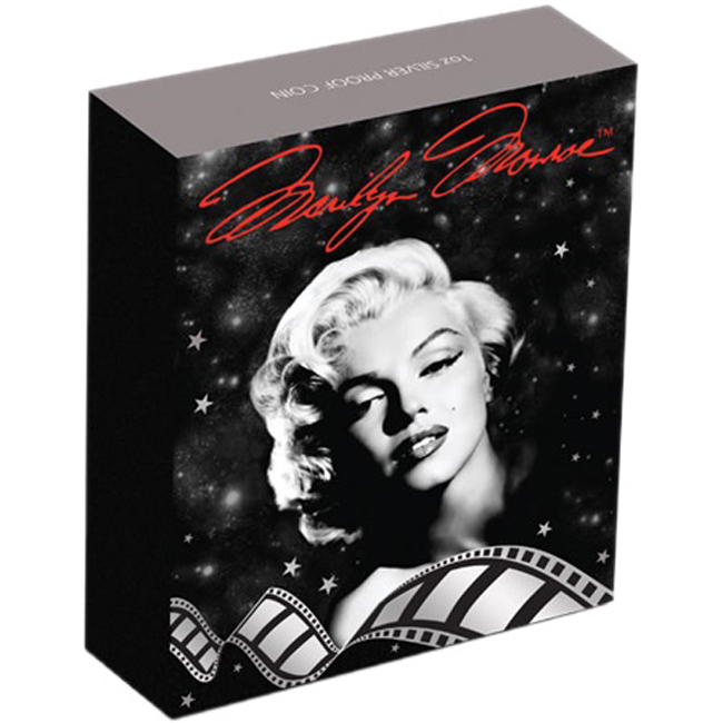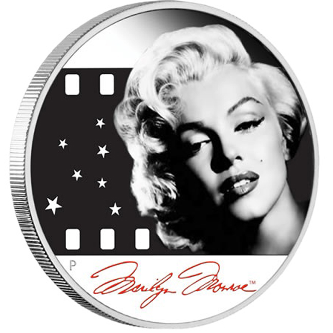 Сребърна монета Мерилин Монро, с частично цветно покритие