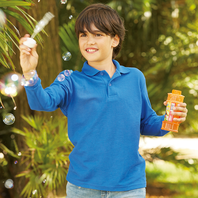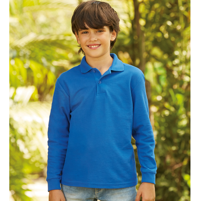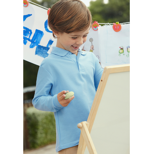 Детска риза поло пике с дълъг ръкав от памук и полиестер, уникално съчетание взело най - доброто от двете материи. От една страна заради полиестера - не избелява, не се разтяга и не става на топчета , а от друга имате усещането за луксозна памучна риза. Ризата е с якичка, ластик на ръкава и две копчета в същия цвят.