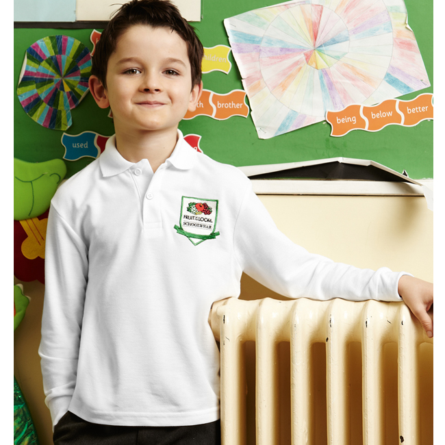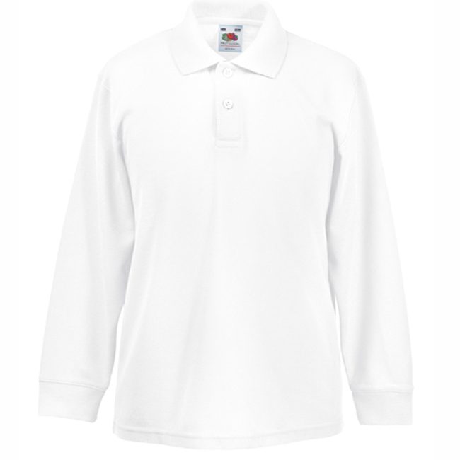 Детска риза поло пике с дълъг ръкав в бял цвят
