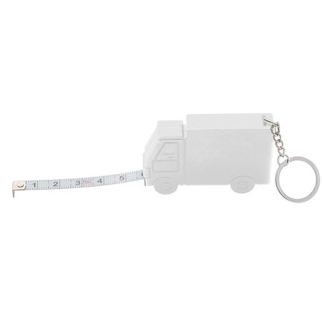 Пластмасов рекламен ключодържател във формата на камионче с ролетка, разтягаща се до 1 метър. Полезен аксесоар за вашите клиенти, които винаги ще имат брандираните ви контакти под ръка.