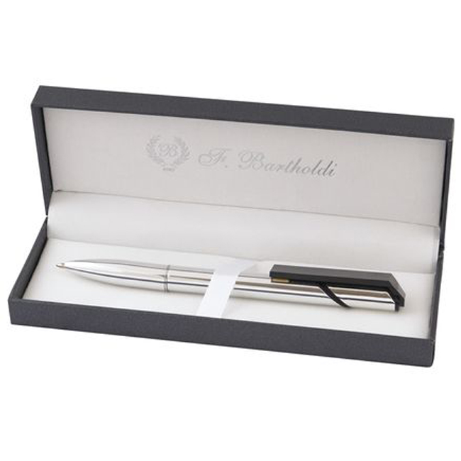 Стилна метална химикалка с вградена преносима памет 16 GB в кутия F. Bartholdi. USB-то е скрито под клипа и се показва чрез завъртане на горната част. Тялото на химикалката е подходящо за лазерно гравиране, а върху клипа може да се брандира с цветен печат.