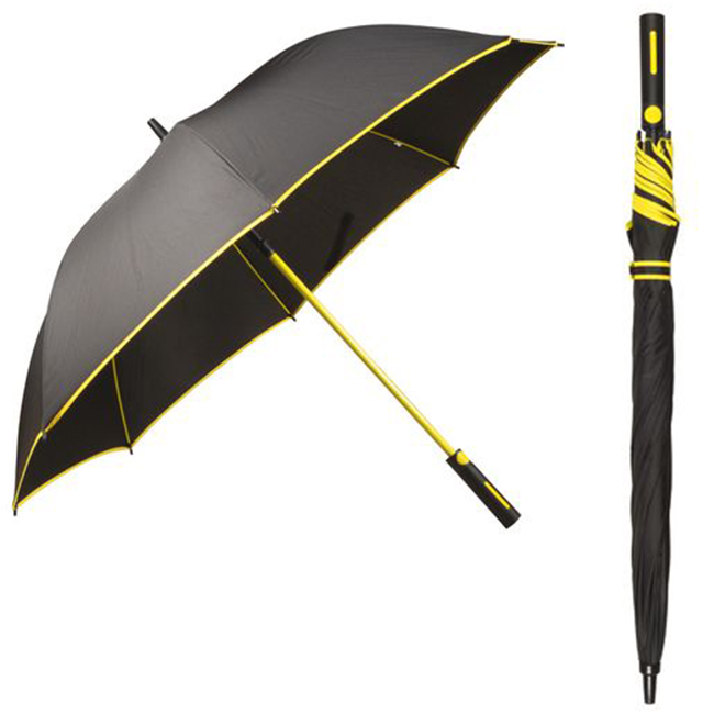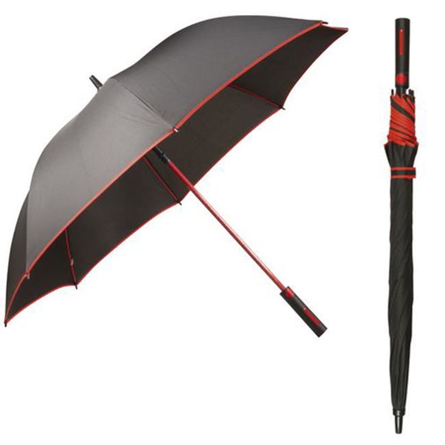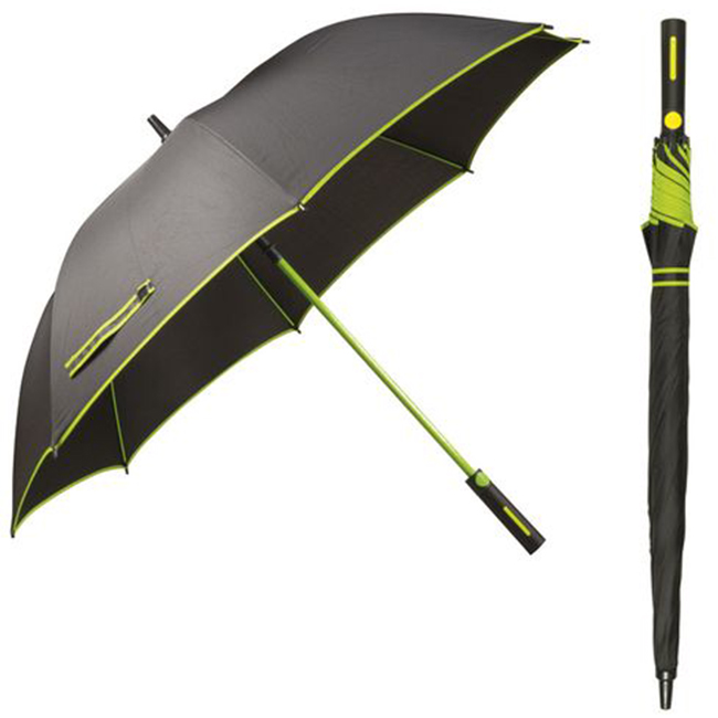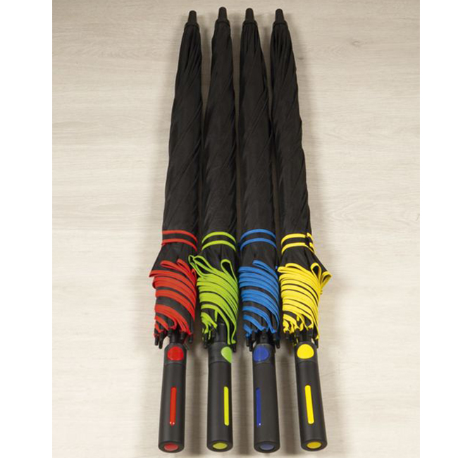 Голям автоматичен голф чадър със спици от фибростъкло и 8 панела. Ергономичната гумирана дръжка придава меко и приятно усещане при допир, а здравите спици предотвратяват счупване при силен вятър и обръщане на чадъра. Един висококачествен подарък подходящ за вашите клиенти, служители и партньори. Поставяме вашето лого чрез ситопечат