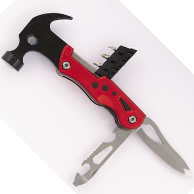 Луксозен и висококачествен сгъваем комплект инструменти с 14 функции, направен от неръждаема стомана и поставен в удобно черно калъфче. Функциите включват чук, 3 вида отвертки, фенерче, нож, отварачка и други. Практичен продукт, който би се ползвал от всеки. Можем да поставим вашето лого или послание чрез лазерно гравиране.