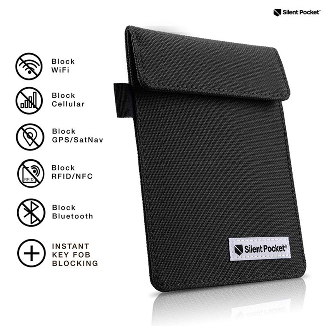 Колата Ви може да бъде отключена или открадната крадци, ако нямате подходящ защитен калъф за Вашия автомобилен ключ (за автомобили с безключово стартиране)! Причината за това е че съвременните интелигентни ключове, излъчващи постоянен RFID сигнал към автомобила, са уязвими на атаки от хакери и крадци, което им позволява да имат достъп до колата ви, включително да я стартират и откраднат. Специалния калъф за ключове Silent Pocket блокира този постоянен безжичен сигнал, като той не е може прочетен/усилен от крадци и предотвратява отключването и запалването на автомобила.