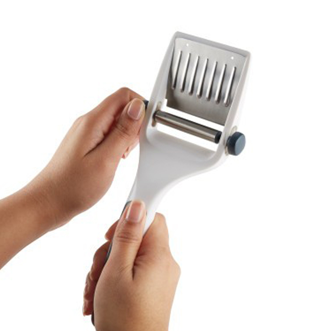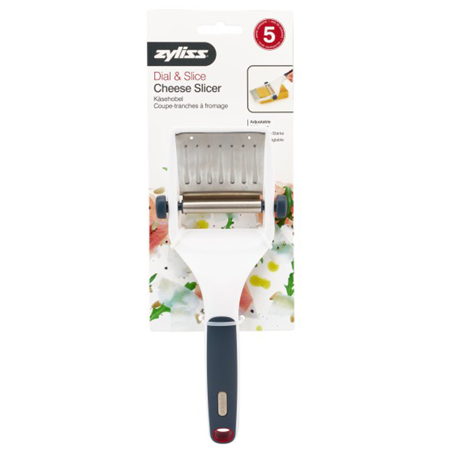 Ножа за сирена на Zyliss е подходящ за голямо разнообразие от сирена – пармезан, чедър, гауда, едем и др. Можете да нагласите дебелината на рязане на 5 различни степени. Острието се прибира с режещия ръб навътре за допълнителна безопастност. Ножа за сирена с регулиране е подходящ за скромна вечеря както и за цяло парти.