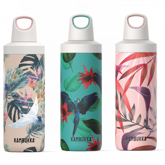 Ако търсите модерна и лесна за употреба бутилка за вода, то Reno Insulated е вашият избор. Завъртете горната част на капака за да пиете или махнете долната част, за да почистите бутилката или да добавите листа от мента, лимонови резенчета или кубчета лед. Вземете Reno, където пожелаете, защото е 100% устойчив на течове и запазва вашите напитки студени до 9 часа (300 мл) или 20 часа (500 мл) и горещи до 5 часа (300 мл) или 8 часа (500 ml). Той има страхотен дизайн с флорални мотиви, който определено ще искате да покажете на всички. Практичността на бутилката се допълва от удобната дръжка за носене и твърдата подложка.