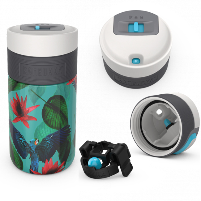 Термочаша от неръждаема стомана Kambukka Etna с термокапак 3 в 1 Snapclean®, 300 мл, папагали