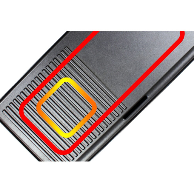 - Оребрена зона за приготвяне на традиционна скара. Вторият допълнителен реотан осигурява допълнително нагряване, когато е включен.