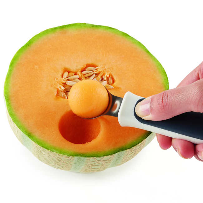 Практичен и изключително лесен за употреба прибор за издълбаване на топчета от пъпеш и други плодове.