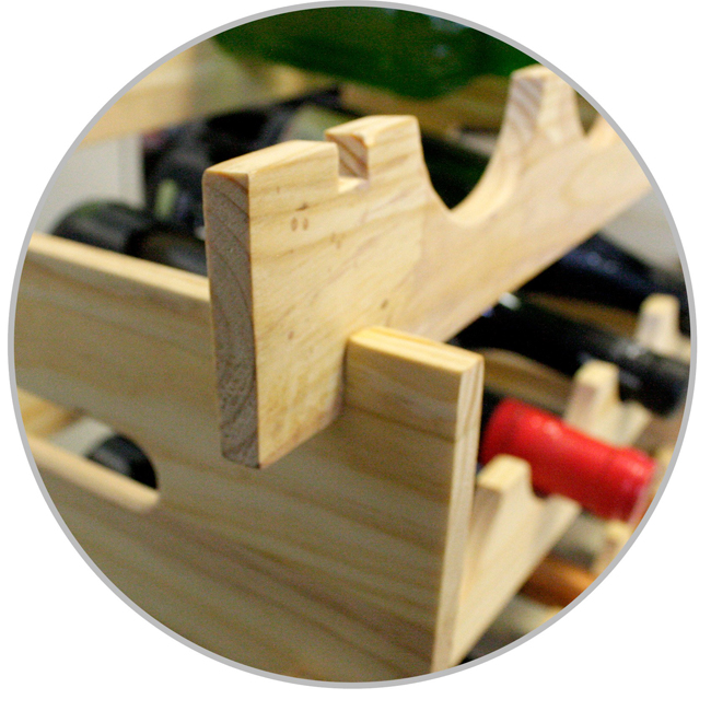 Тази проста формула може да спаси всеки от безизходния момент с покупката на подарък. Ето защо Ви предлагаме стойка за вино, изработена от дърво. Сглобяването става бързо и лесно. Стойката е с капацитет 12 бутилки, но можете да си закупите допълнително приставки и да го увеличите.