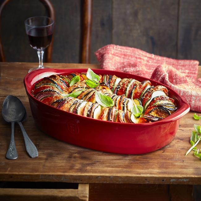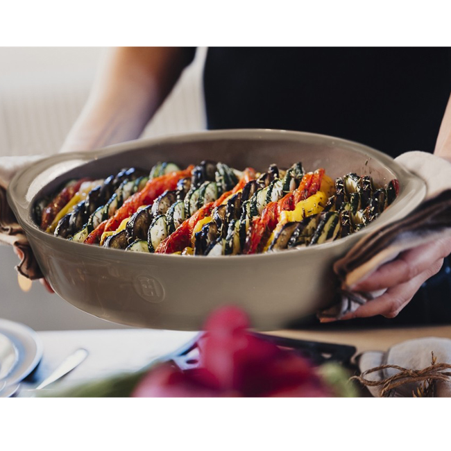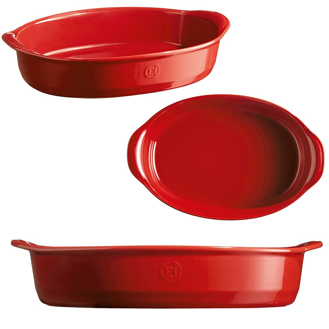 С елегантните си извивки, овалната форма за печене на Emile Henry е идеална за готвене и сервиране на месо или зеленчуци.
